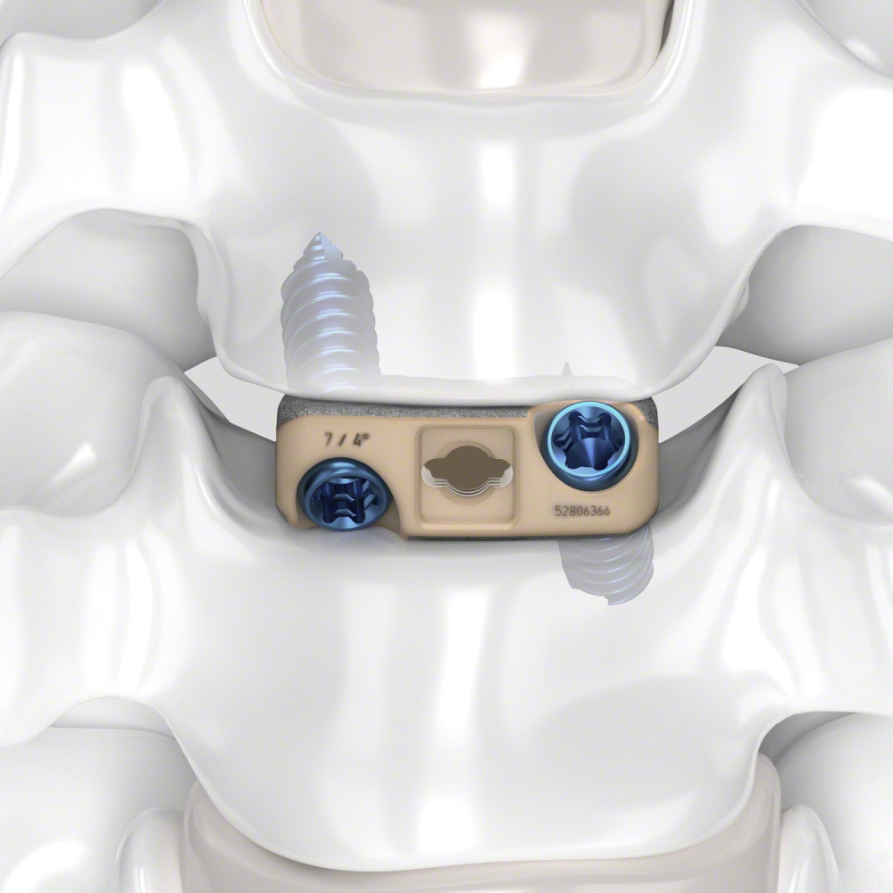 The intrinsic design does not add profile to the anterior border of the vertebral body, limiting risk of damage to adjacent soft tissue and blood vessels.